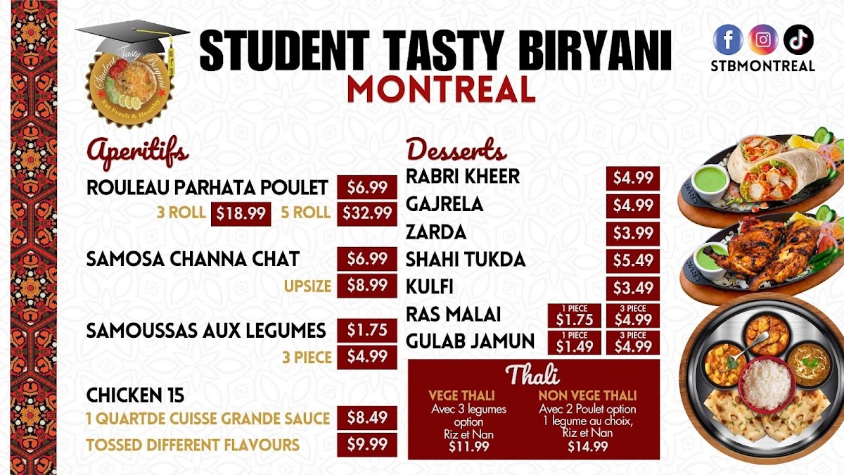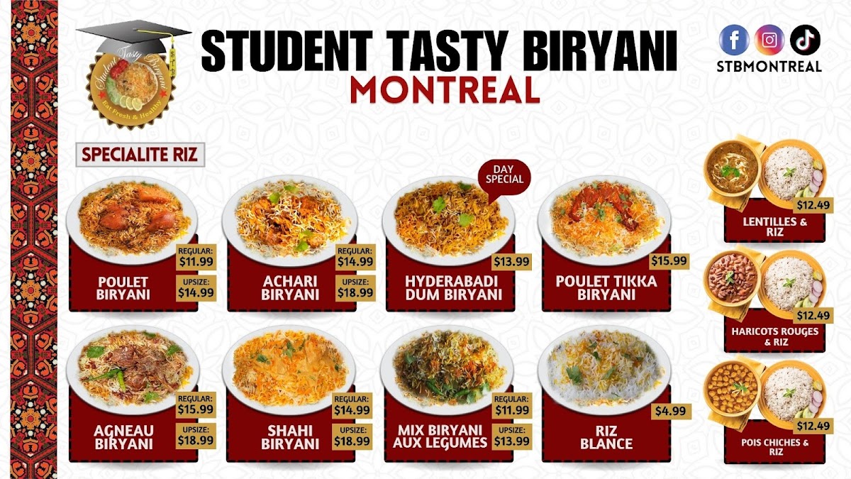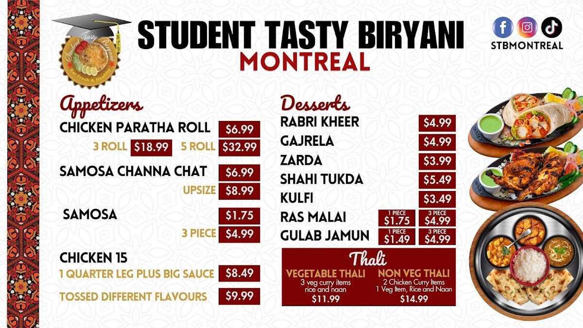 Highly seasoned sella basmati rice topped with a chicken quarter leg marinated Kashmiri style served with a signature sauce.